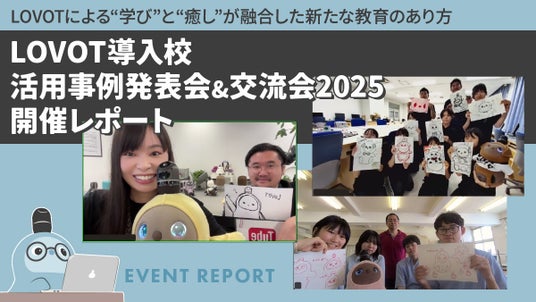 ロボットベンチャーのGROOVE X 株式会社(本社:東京都中央区日本橋、代表取締役:林要)が開発する家族型ロボット『LOVOT[らぼっと]』は、教育機関においても活用が広がっています。2025年6月21日(土)には、『LOVOT』を導入している高等学校の生徒たちが集うオンライン交流イベント「LOVOT導入校活用事例発表会&交流会2025」を開催いたしました。本イベントでは、生徒たちが学校での『LOVOT』活用事例を紹介し合い、生徒目線での『LOVOT』の可能性が共有されました。本イベントを通じ、“学び”と“癒し”が融合した新たな教育のあり方が浮き彫りとなりました。