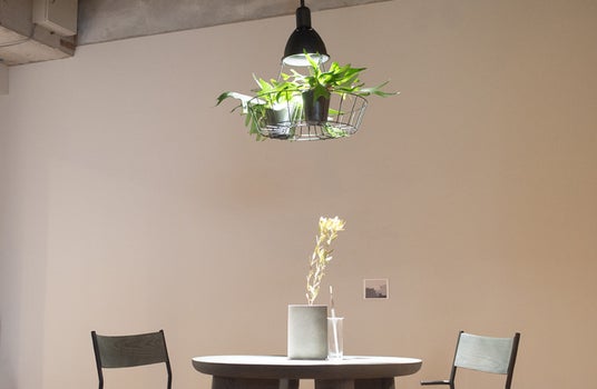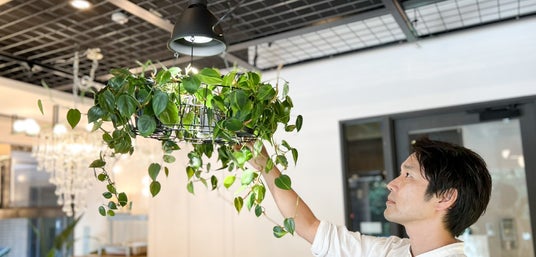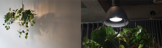 そんな声を受け、「ならば照明と一緒に吊るせたら、場所もとらず、もっと気軽に緑を楽しめるのでは︖」というアイデアが開発担当者の頭に浮かんだのがスタートです。