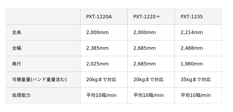 PXT-1220A (可搬重量:20Kg) PXT-1220+ (可搬重量:20Kg) PXT-1235 (可搬重量:35Kg)