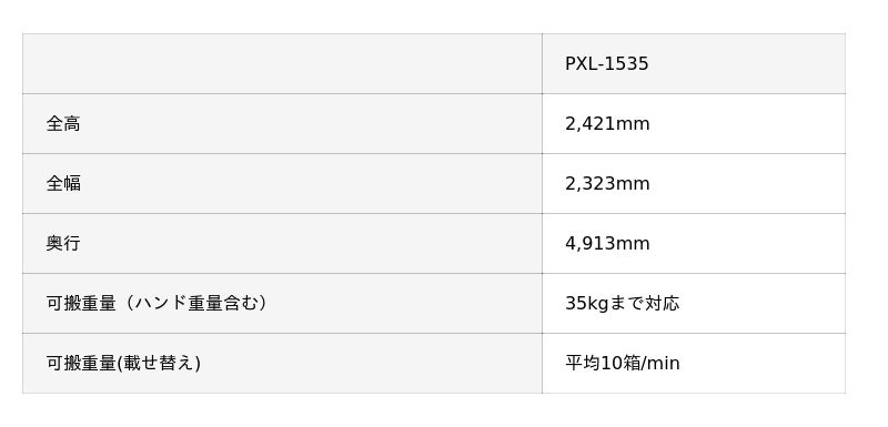 低全高パレタイザー PXTシリーズPXT-1220A (可搬重量:20Kg) PXT-1220+ (可搬重量:20Kg) PXT-1235 (可搬重量:35Kg)