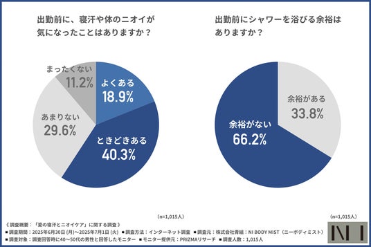 【NI BODY MIST】夏の寝起き、6割がニオイが気になると回答!しかし3人に2人はシャワーの余裕なし?