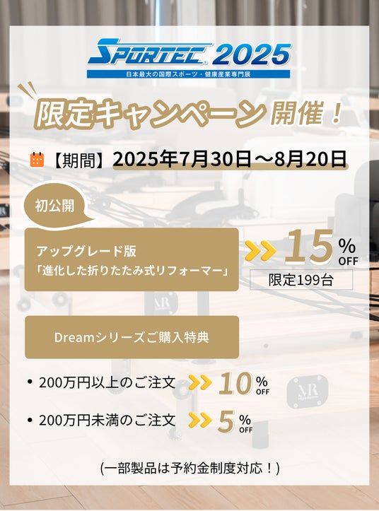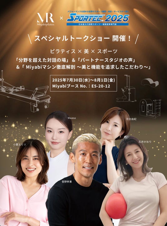 2025年7月30日(水)~8月1日(金)の3日間、国内最大級のスポーツ・健康産業総合展「SPORTEC 2025」に、ピラティスマシン専門ブランドMiyabi Pilatesが出展いたします。