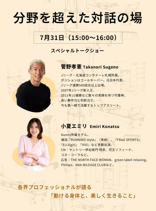 また、元日本代表GKやモデル、ピラティススタジオオーナーを招いたスペシャルトークショーや、インストラクターによるデモンストレーションも毎日開催。