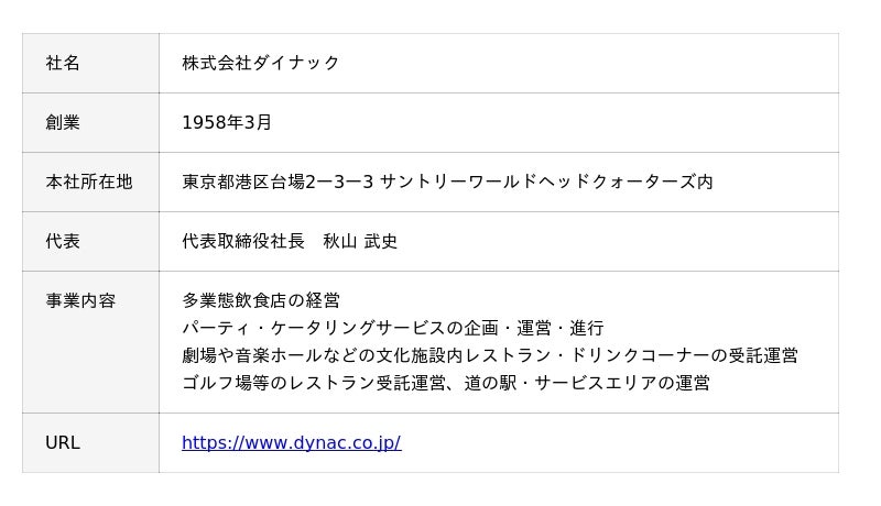 ダイナックはこれからも、『感動を調理して、食の価値を広げていく。』をパーパスに掲げ、お客様・従業員そしてステークホルダーに寄り添い、豊かで楽しいコミュニケーションを“食“を通じて実現します。そして、食文化の発展、新しい価値と感動を創造し、持続可能な社会を実現することを目指していきます。