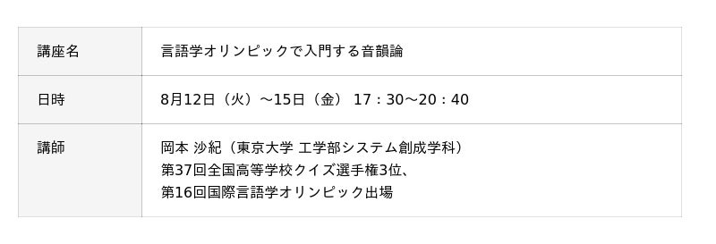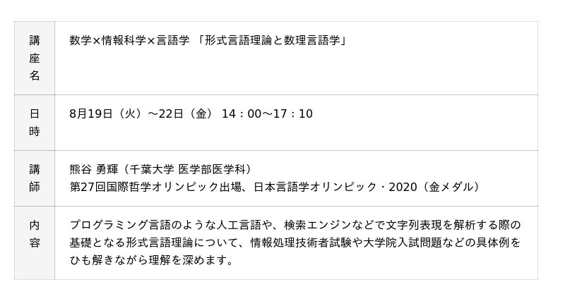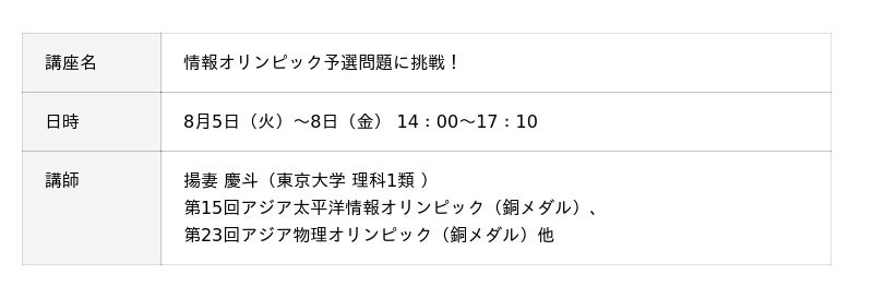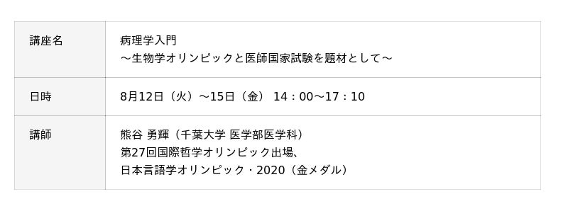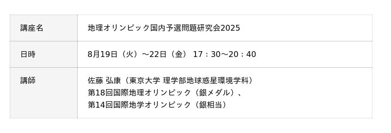 [講座一覧]「数学」以外にも多数展開。科学オリンピック対策講座の数々