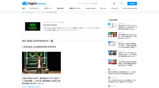 メディア事業を展開するログミー株式会社(本社:東京都渋谷区、代表取締役社長:三浦由加里)が運営する「ログミーBusiness」は、本日(2025年7月24日)より、7月2日から4日まで京都で開催された日本最大級のスタートアップカンファレンス「IVS2025」の書き起こし記事の公開を開始いたします。