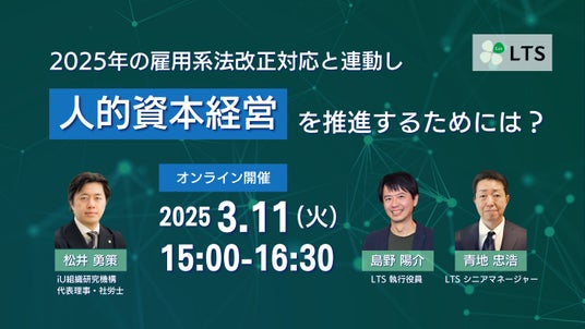 株式会社エル・ティー・エス(本社:東京都港区、代表取締役社長:樺島 弘明、以下LTS)は3月から、2025年施行の改正人事労務関連法(育児介護休業法・雇用保険法・次世代育成支援対策推進法・女性活躍推進法ほか)へ対応する企業様へ、人財マネジメントの高度化、組織変革およびリーダーシップ開発を基軸にした人的資本経営を推進するソリューション提供を開始します。