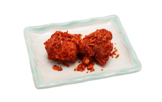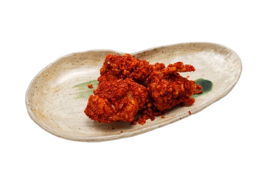 クリスピーチキン(レッド):420円(税込462円)塩ニンニクベースの鶏のから揚げにオリジナル辛味パウダーをプラス!旨みと辛味のコラボチキン!