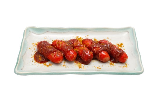 赤のカレーウインナー:320円(税込352円)いつもの赤ウインナーにひと手間かけてバージョンアップ!カレースパイスソースで赤星にピッタリ!