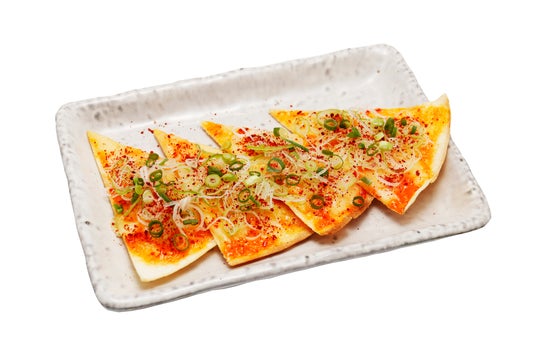 赤のコリアンピザ:280円(税込308円)ヤンニョンベースのソースとチーズのコンビネーション♪軽い食感のおつまみピザ!
