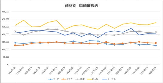 【独自調査:52】当社取扱の中古オフィス家具の傾向や動向等を示す指数をとりまとめました。オフィスバスターズが、独自にまとめた '25年6月度の「中古オフィス家具指数」を発表します。