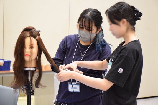 サービス業・美容師のマネキンを使ったコテ巻き体験