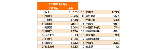 「那覇市」や「沖縄市」といった都市部に加え、「中頭郡」「国頭郡」「島尻郡」といった郡エリアも上位にランクインしていました。