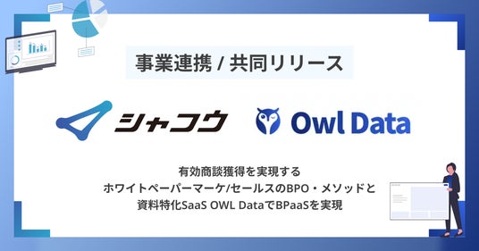 株式会社シャコウ × 株式会社Owl Dataと事業連携。有効商談獲得を実現するホワイトペーパーマーケ/セールスのBPO・メソッドと資料特化SaaS Owl DataでBPaaSを実現。