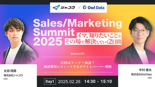 事業連携を記念し、株式会社シャコウ主催BtoBマーケ/セールスカンファレンス(2025年2月26日・27日)にて、シャコウ × Owl Dataの2社によるトークセッションを行います。