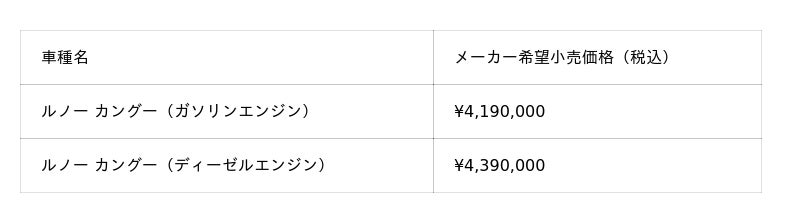 新型ルノー カングー(マイナーチェンジ)主要装備
