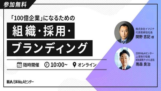 2025年6月に開催され、経営者から「本気で次の一手が見えた」と大反響を呼んだWEBセミナーが、8月7日(木)に再配信されることが決定しました。主催は、人材と組織のブランディング支援に特化する株式会社イマジナと、M&A支援のプロフェッショナル集団・日本M&Aセンター。主な対象は、売上10億~100億円規模の成長フェーズにある企業の経営者層。業種は問いません。