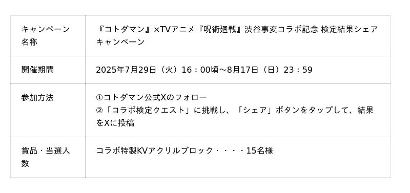 ・『コトダマン』×TVアニメ『呪術廻戦』渋谷事変コラボ特設サイト: