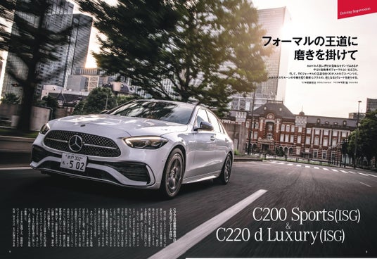 試乗記は、C200 Sports(ISG)&C220 d Luxury(ISG)と、メルセデスAMG-C63 S E PERFORMANCE、そしてメルセデスAMG-C43 4MATICというセダンの3本立てです。柱となる2種類のエンジンを搭載したモデルから、AMGのハイパフォーマンスモデルまで最新Cクラスの走りをレポートします。