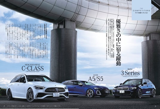 ライバル対決は、やはり気になるジャーマン3で。C200ステーションワゴンと、BMW 3シリーズツーリング、アウディA5/S5アバントと、ワゴン同士で乗り比べてみました。それぞれの個性と乗り味の違いにフォーカスします。