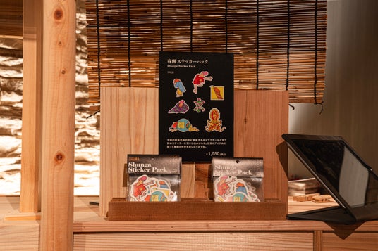 第二会場のグッズショップでは、本展で展示される春画をモチーフにしたオリジナルグッズを販売。