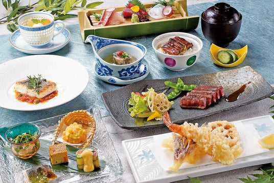 鮨・天麩羅・鉄板焼「羽衣」では、連日続く暑さを乗り清涼感のあるのディナーとテイクアウトのお弁当をご用意しています。鰻や旬の魚、夏野菜を贅沢に使用した会席やお弁当で暑い夏を涼し気にお過ごしください
