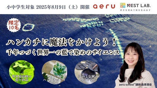 株式会社NEST EdLAB(東京都新宿区、代表取締役:藤田大悟、以下「NEST EdLAB」)は、オンライン研究スクール「NEST LAB.」において、株式会社和える(以下「aeru」)と協働し、自然と伝統、そして科学の力を融合した「藍染めサイエンス教室」を2025年8月9日(土)に開催します。