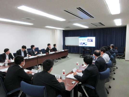 はじめに、前田病院長より歓迎のあいさつがあり、デジタル田園健康特区における取り組みの一環として、学術研究院医歯薬学域地域医療DX推進講座の上田浩平助教(特任)が、岡山大学病院で実証調査を行った「救急救命士による病院前超音波」について、これまでの経過と今後の検討状況を報告しました。続いて、櫻井副病院長より「岡山県内での医療DX推進に向けた状況」について説明があり、活発な意見交換が行われました。