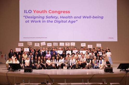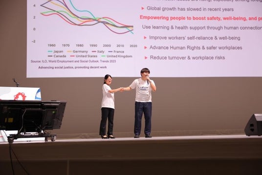 このコンテストは、国際労働機関(ILO)が主催する国際的な教育イベント「ILOユース・コングレス」の一環として実施され、高校生・大学生のチームが「健康で安全に働く権利」についての事前研修を経て、「職場の健康・安全・ウェルビーイング」を推進する提案を英語でプレゼンテーションするものです。