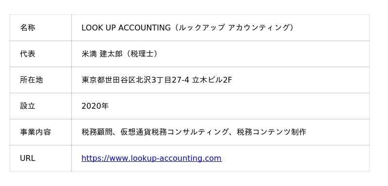 会計事務所LOOK UP ACCOUNTING(所在地:東京都世田谷区・下北沢、代表:米満建太郎(米満建太郎税理士事務所))は、仮想通貨税務に関する正確で実務的な知識の普及を目的としたコンテンツ発信プロジェクトを、2025年7月25日より本格的に開始しました。