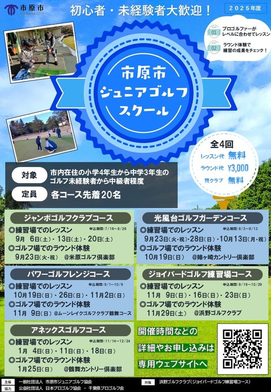 主催:一般社団法人 市原市ジュニアゴルフ協会協力:公益社団法人 日本プロゴルフ協会(PGA)、千葉県プロゴルフ会