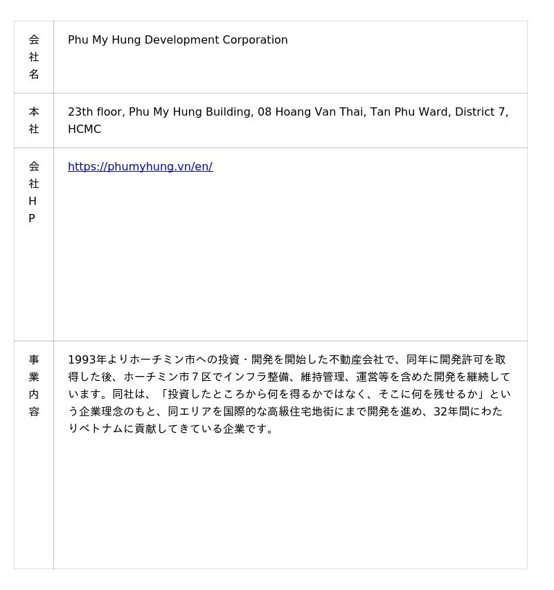 急速に発展するベトナムにおいて、当社とフーミーフン社は 2015年に協業を発表後、約10年にわたり安定的な協業関係を継続しており、今回両社の更なる協業の深化を目指し、新たに10年を超える長期大規模開発に取り組んでまいります。
