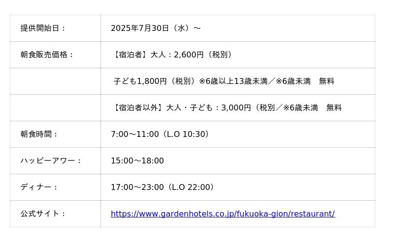 【三井ガーデンホテル福岡祇園】7月30日(水)朝7:00新レストランオープン