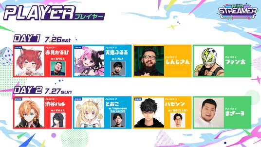 DAY1・DAY2あわせて、計13名の人気ストリーマーが集結。