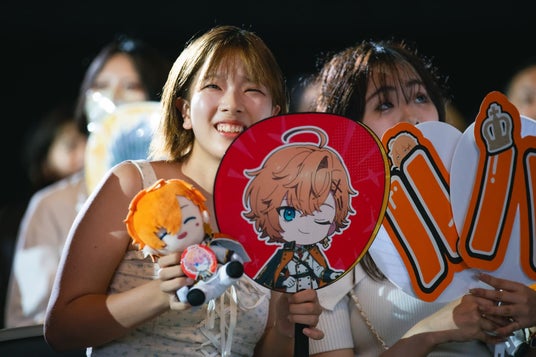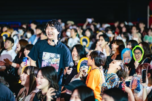 オンラインで参加するストリーマーたちは、サポート役のストリーマーがタブレットを持つ形で一緒に登場。グッズのジャンボうちわやオリジナルの応援パネル・ペンライトを掲げ、大きな歓声に包まれました。