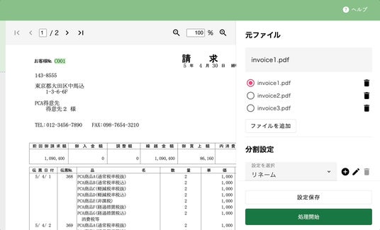 請求書の出力・送付がもっと便利に!「PDF分割」ファイル名変更機能を追加