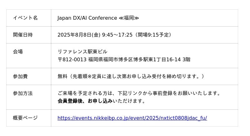 Japan DX/AI Conference ≪福岡≫への来場予約が可能です