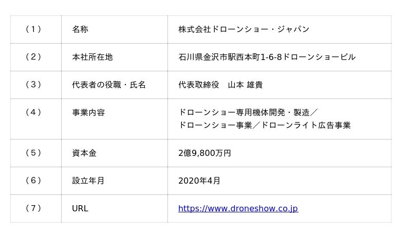 株式会社ヤマタネ(東京都江東区、代表取締役社長:河原田 岩夫、以下「ヤマタネ」)は、株式会社ドローンショー・ジャパン(石川県金沢市、代表取締役:山本 雄貴、以下「ドローンショー・ジャパン」)と弊社深川営業所管内におけるドローンショーの開催に関する業務提携契約を締結いたしましたのでお知らせいたします。