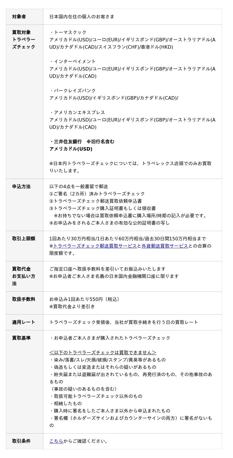 ■トラベレックス トラベラーズチェック(T/C)郵送買取サービス概要