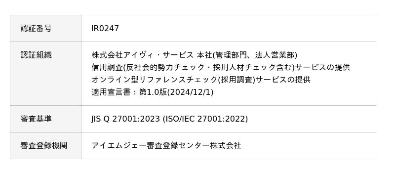 株式会社アイヴィ・サービス(管理部門・法人営業部)、情報セキュリティマネジメントシステム(ISMS)の国際規格である「JIS Q 27001:2023 (ISO/IEC 27001:2022)」を取得