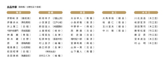 陶芸・染織・漆芸・金工・木竹工の5つの工芸分野の重要無形文化財保持者(人間国宝)39名が出品。