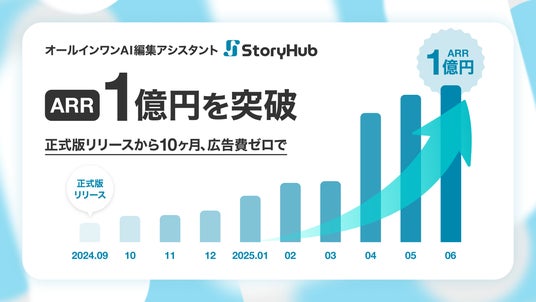 StoryHub株式会社(本社:東京都千代田区、代表取締役CEO:田島 将太、以下、当社)が提供するオールインワンAI編集アシスタント「StoryHub(ストーリーハブ)」(以下、StoryHub)は、正式版リリースから10か月でARR(年間経常収益)1億円を突破しました。広告費ゼロ・社員数7名という体制ながら、TV局、新聞社、出版社、上場企業のマーケティング・広報担当者などを中心に80社以上に導入いただいております。