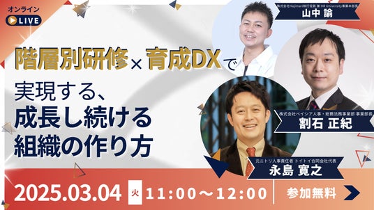 株式会社Hajimari(所在地:東京都渋谷区、代表取締役:木村直人)は、2025年3月4日(火)11:00~12:00、株式会社ベイシア人事・総務法務事業部事業部長の割石 正紀氏、元ニトリ人事責任者 トイトイ合同会社社長の永島 寛之氏を迎え、オンラインセミナーを開催いたします。