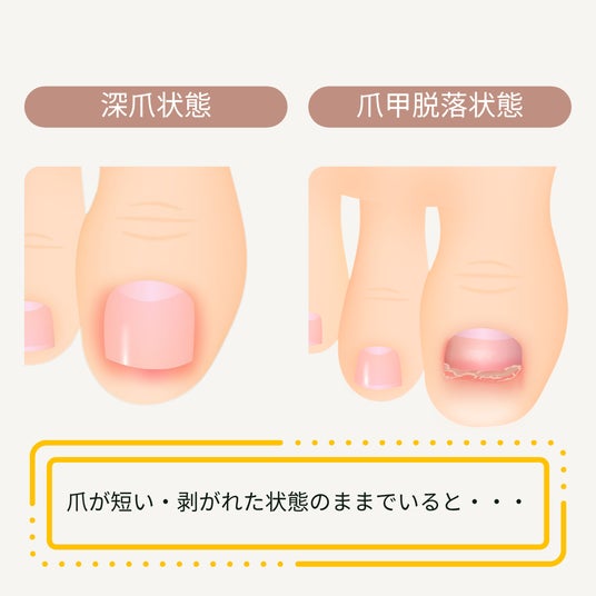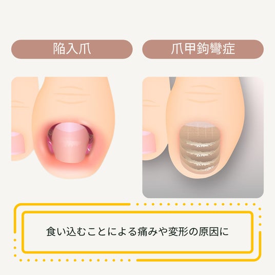 足の爪は体重がかかることに加え、靴による圧迫を受けるため、手とは異なりトラブルが発生しやすいです