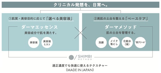 多種多様なスキンケア商品、成分がある中、「審美眼を持って選ぶ」「真の美しさを求める」のSHIMBIと、なりたい肌を手に入れる為のオリジナルの方法(METHOD)を合わせた造語です。