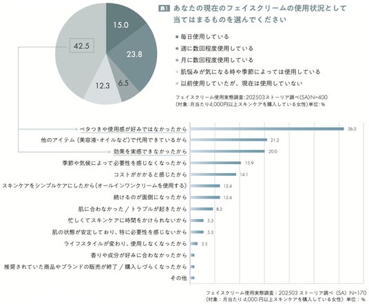 しかしながら、使用感への不満や機能訴求と効果実感の乖離から、使用中止者が多く存在していることが分かりました。(表1)