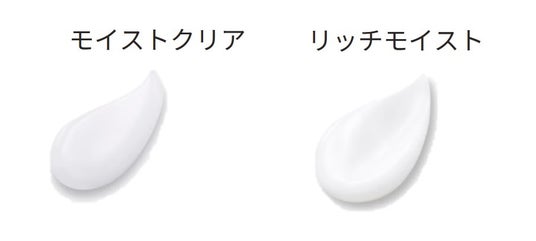 季節や好みに応じて使用いただくことを念頭に、2つの心地よいテクスチャーを採用しました。こっくりとした軟膏仕立てのリッチモストに加え、クリームの使用感を敬遠してきたユーザーも心地よく使っていただけるモイストクリアを配置しています。特にモイストクリアは、非常にみずみずしい使用感でありながら、リッチモイストと同等の保水効果を有しており、しっとりとした保湿感はそのままに使用感を選択できる機能性を追求しています。