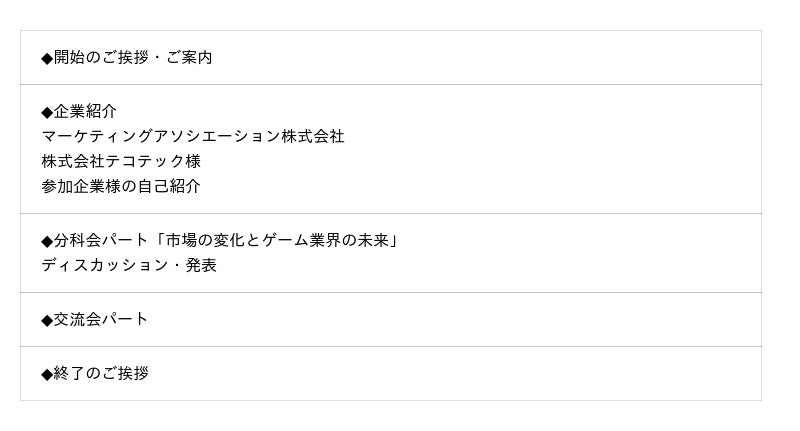 ゲームサポート代行サービスを提供しているマーケティングアソシエーション株式会社(本社:東京都台東区 代表取締役:中園広和、以下当社)は、2025年7月11日(金)、東京都内にて「第27回 ゲーム業界情報交換会」を株式会社テコテックとの共催で開催しました。