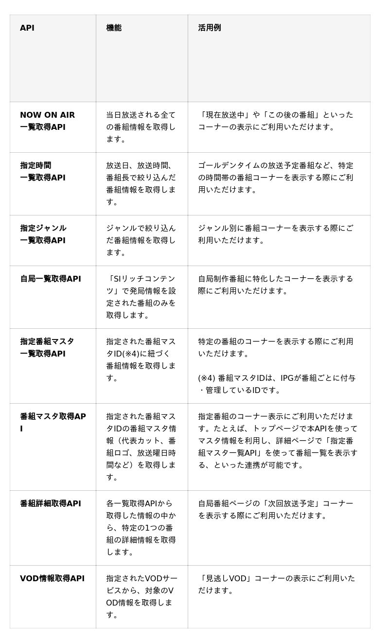 (※3)IPGがAPIを提供する形式となるため、各ページは放送局様で制作していただく必要があります。