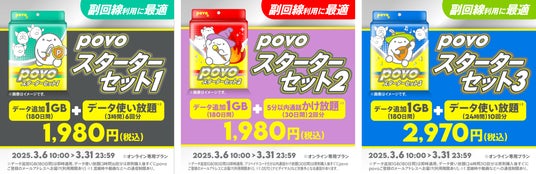 KDDI、沖縄セルラーは2025年3月6日から3月31日まで、povo2.0の期間限定トッピングとして、「povoスターターセット」全3種を提供します。